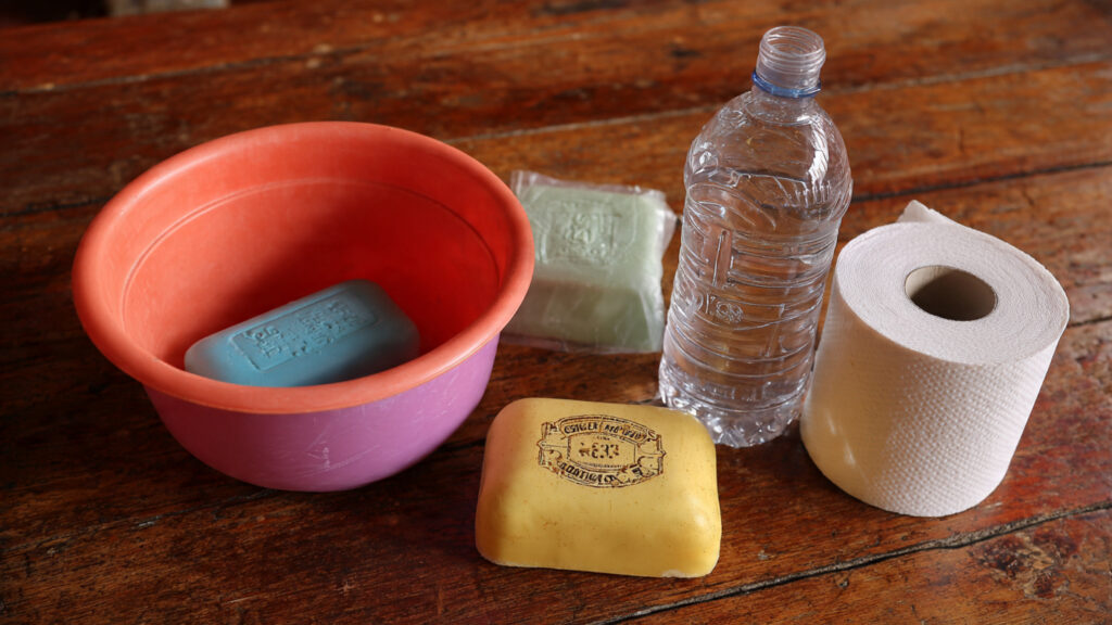 3. De l’Eau de Javel (Petite bouteille) : Pour désifier les sanitaires.