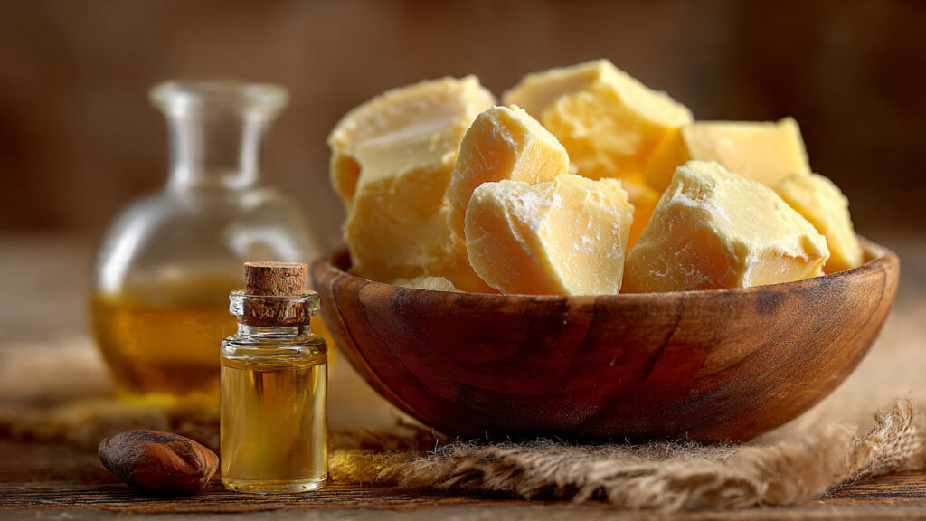 • Le Beurre de Cacao : Une excellente alternative locale, qui sent le chocolat et nourrit tout aussi bien.